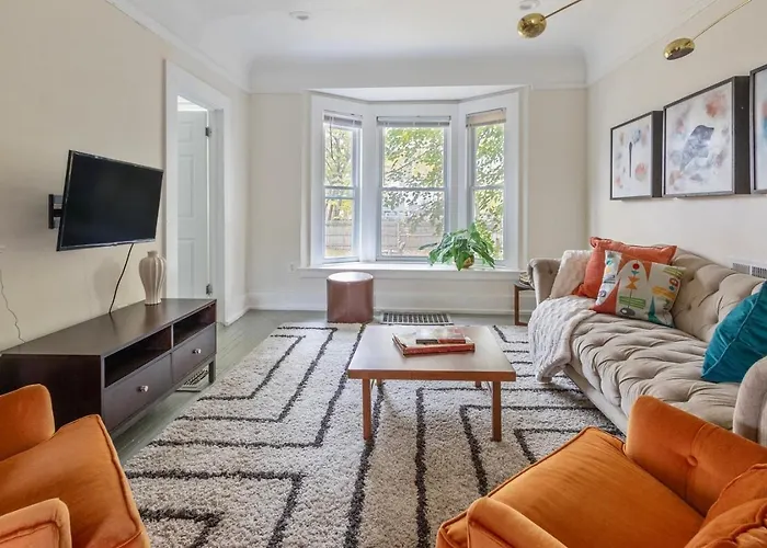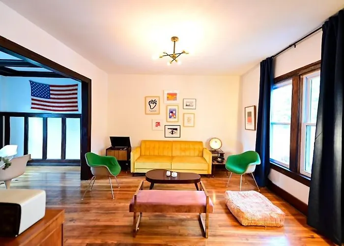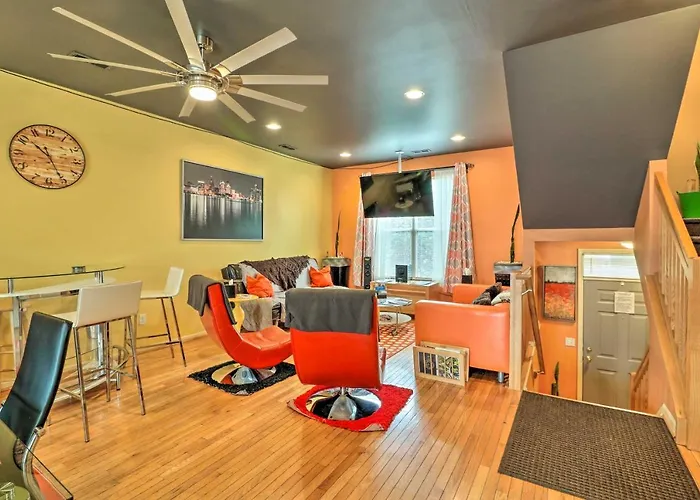 The 3-bedroom Luxe Mid-Century Styled Historic Townhouse # 1 Villa is within 3.9 km of Saint Andrews Hall, and approximately a 10-minute drive from the domed American football stadium "Ford Field". Offering a free carpark and live performances, this property is set in Detroit.