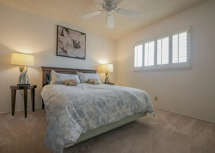 Cozy 3-Bedroom Near The Strip In Vegas provides easy access to Best Buy, a few steps from the venue. There are rooms with a flat-screen TV with satellite channels, a dining area and a sitting area along with an equipped kitchenette area with dishwasher, refrigerator and kitchenware.